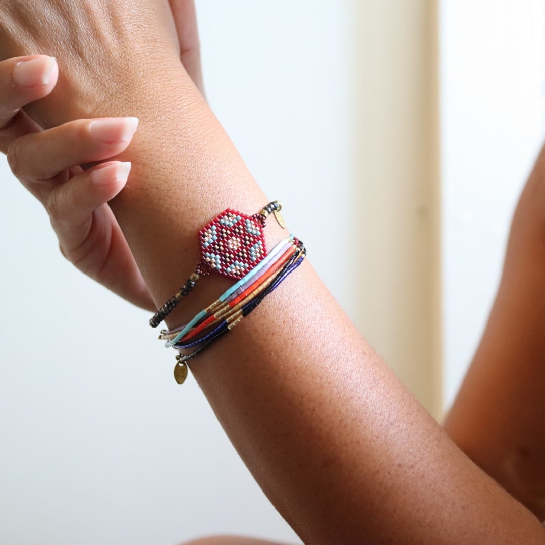 ガラス製品のAIKOビーズを通した6連ブレスレット