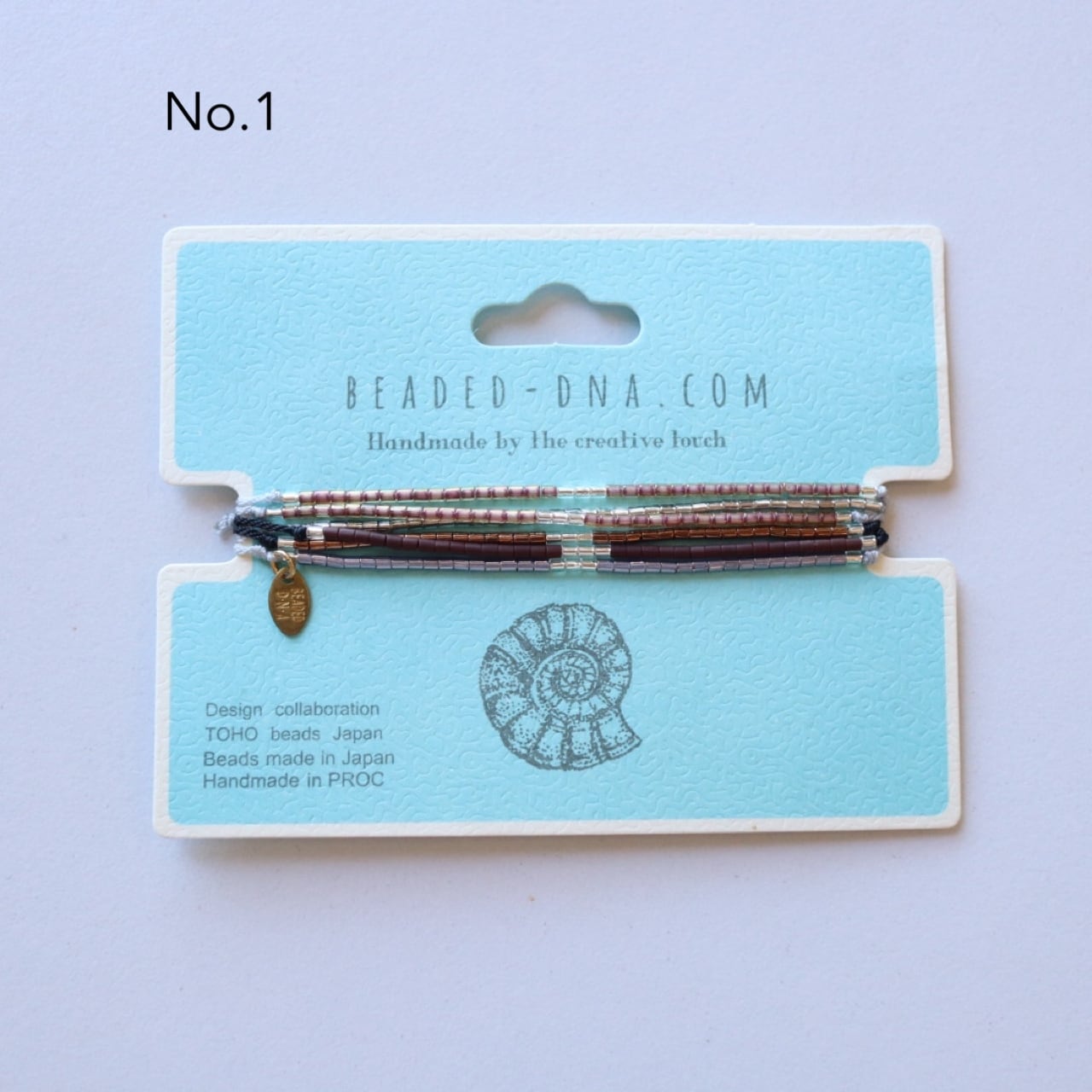 ◉素材・成分:ガラスビーズ、銅パーツ_ロゴ(BEADED DNA)、ポリエステルコード
