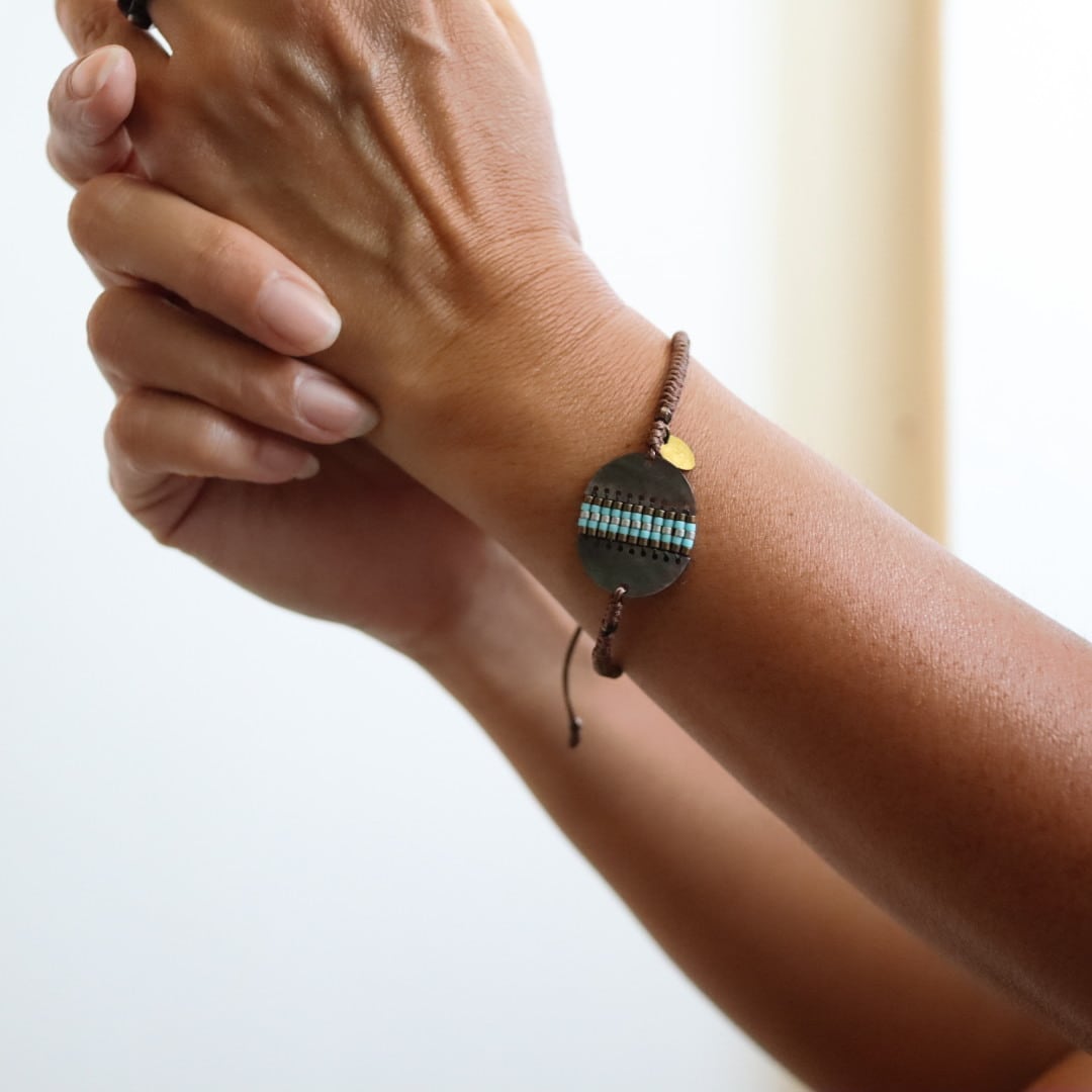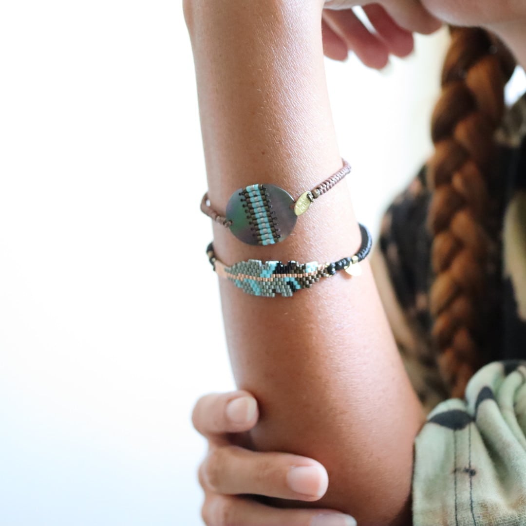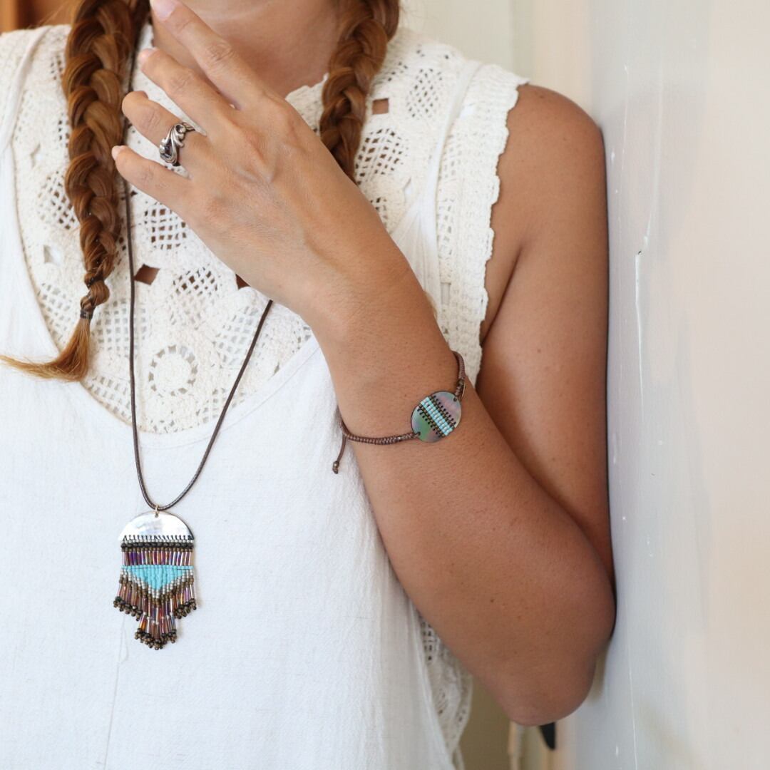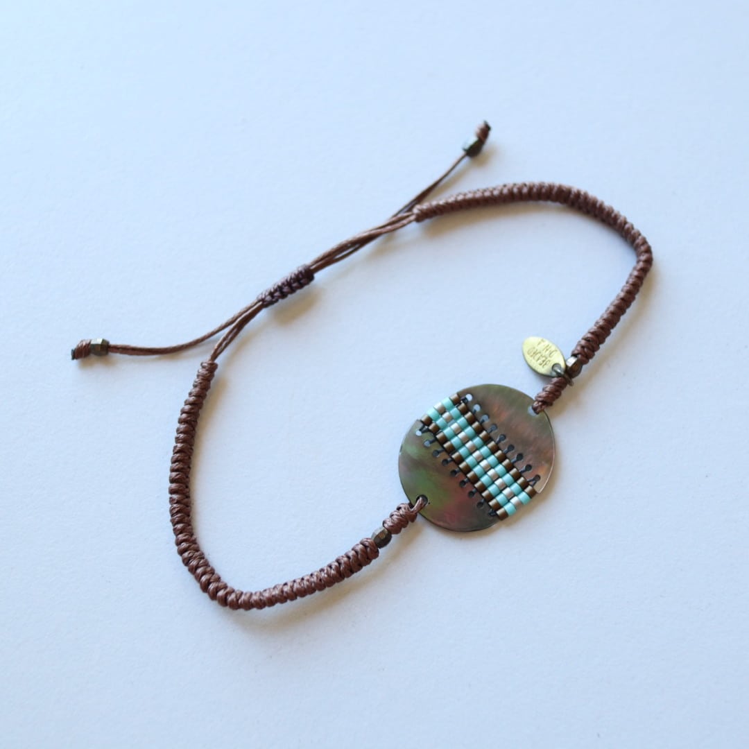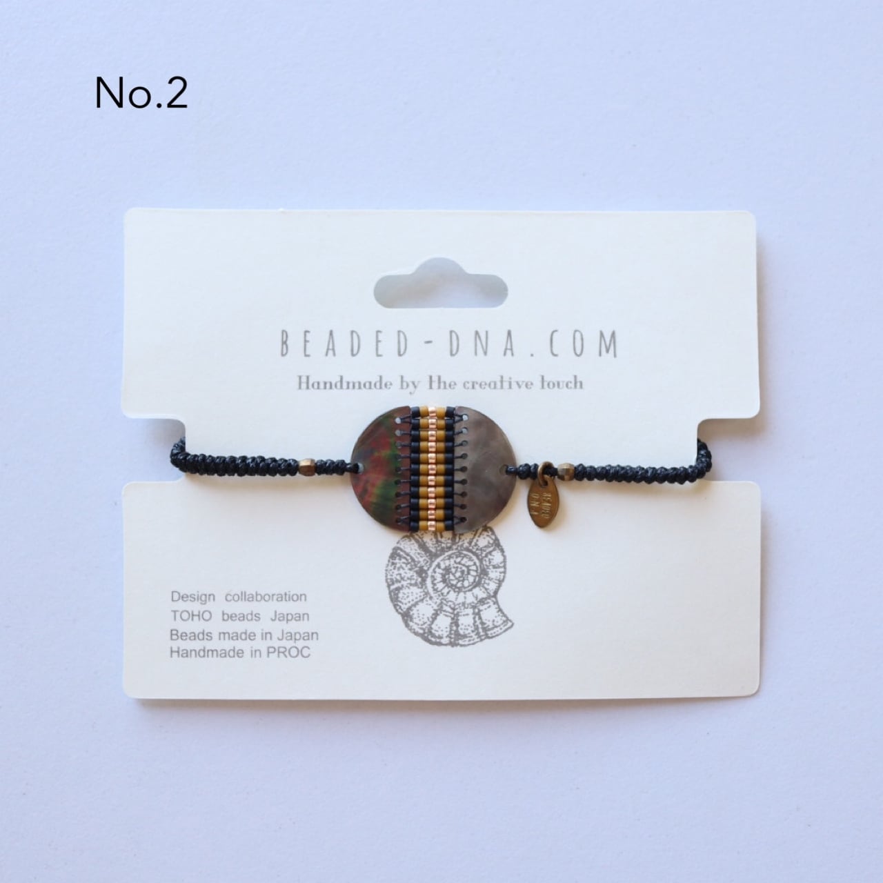 ◉素材・成分:シェルパーツ、ガラスビーズ、ナイロン(糸_ONEG)、ポリエステルコード、銅パーツ、銅ビーズ