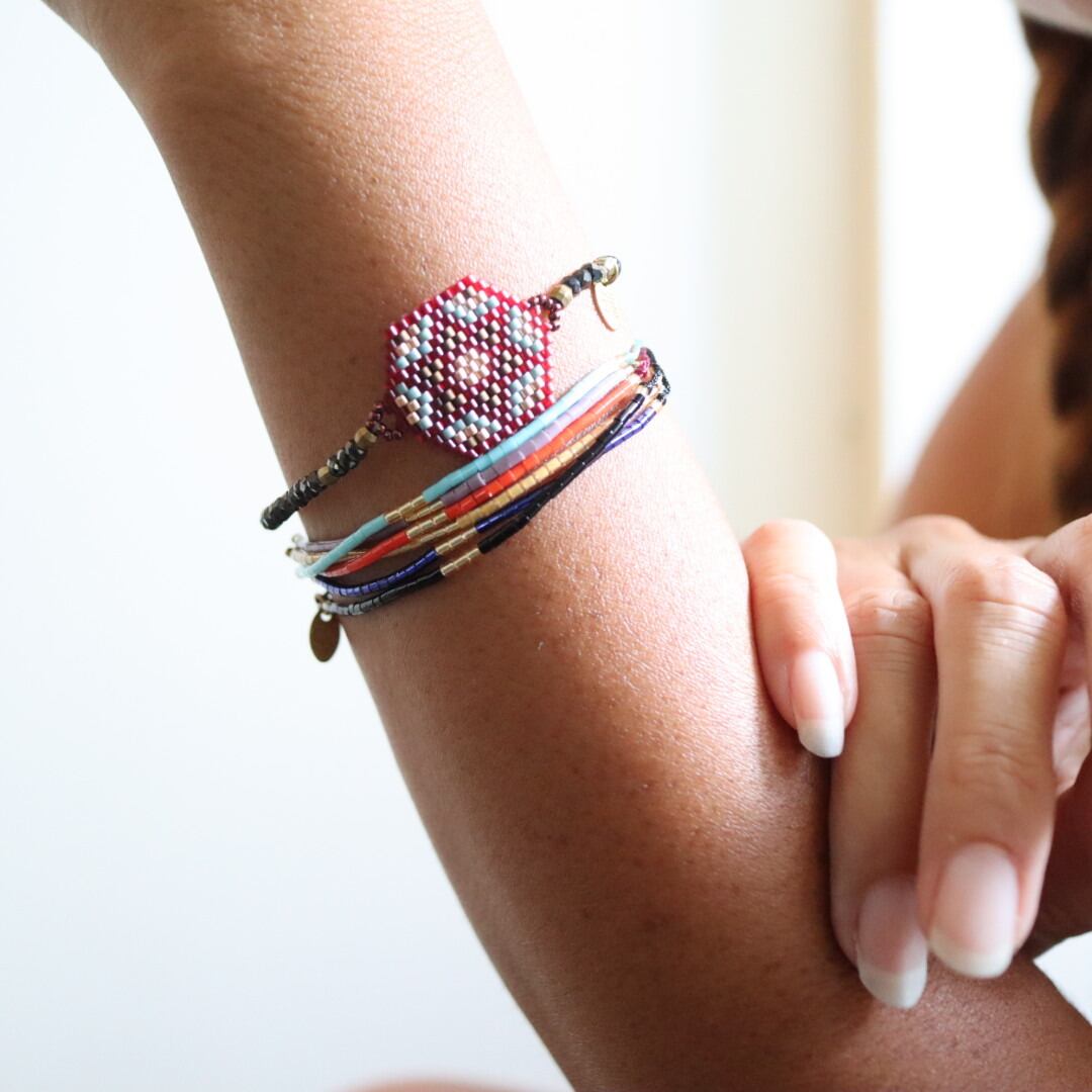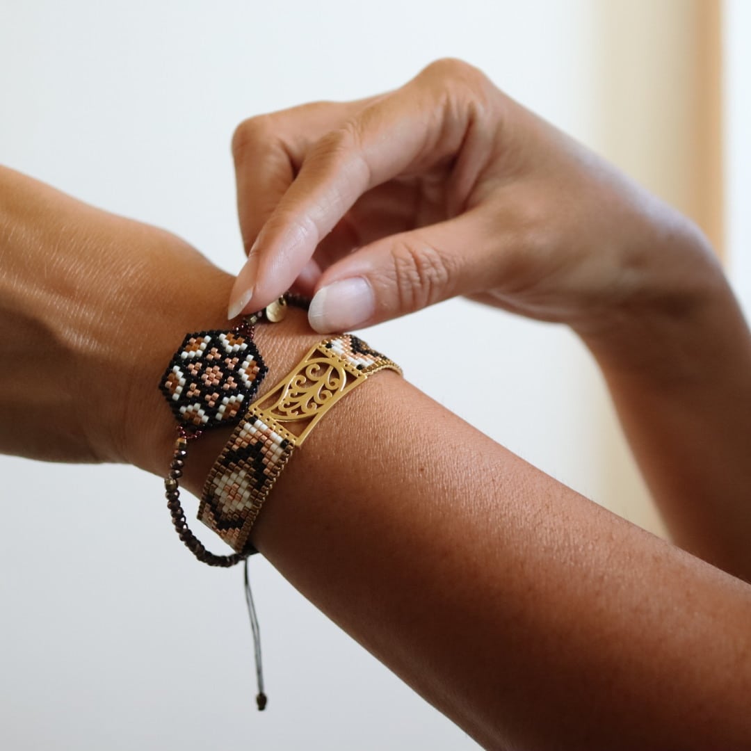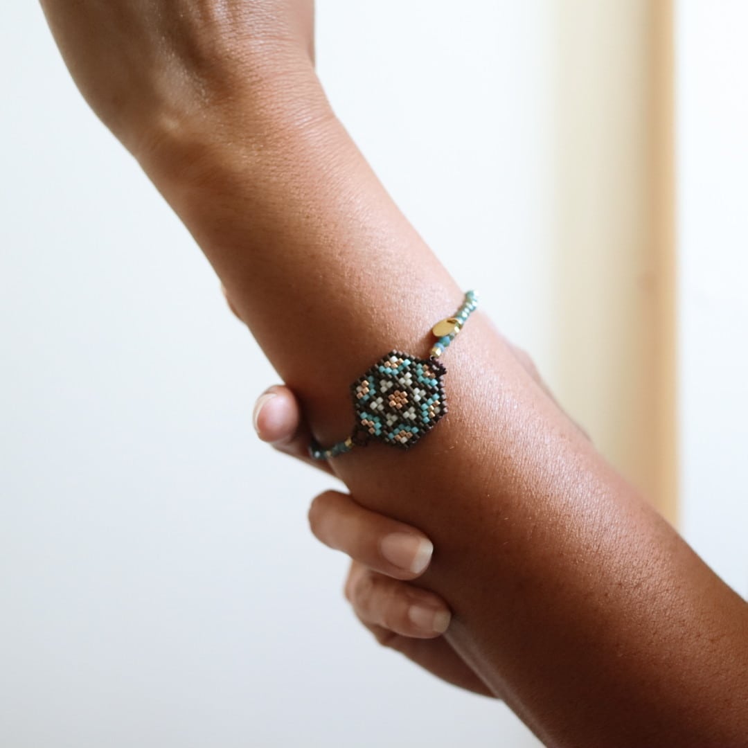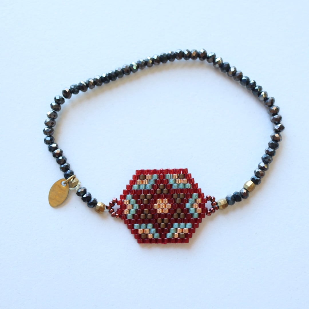 ヘキサグラムモチーフのビーズステッチブレスレット