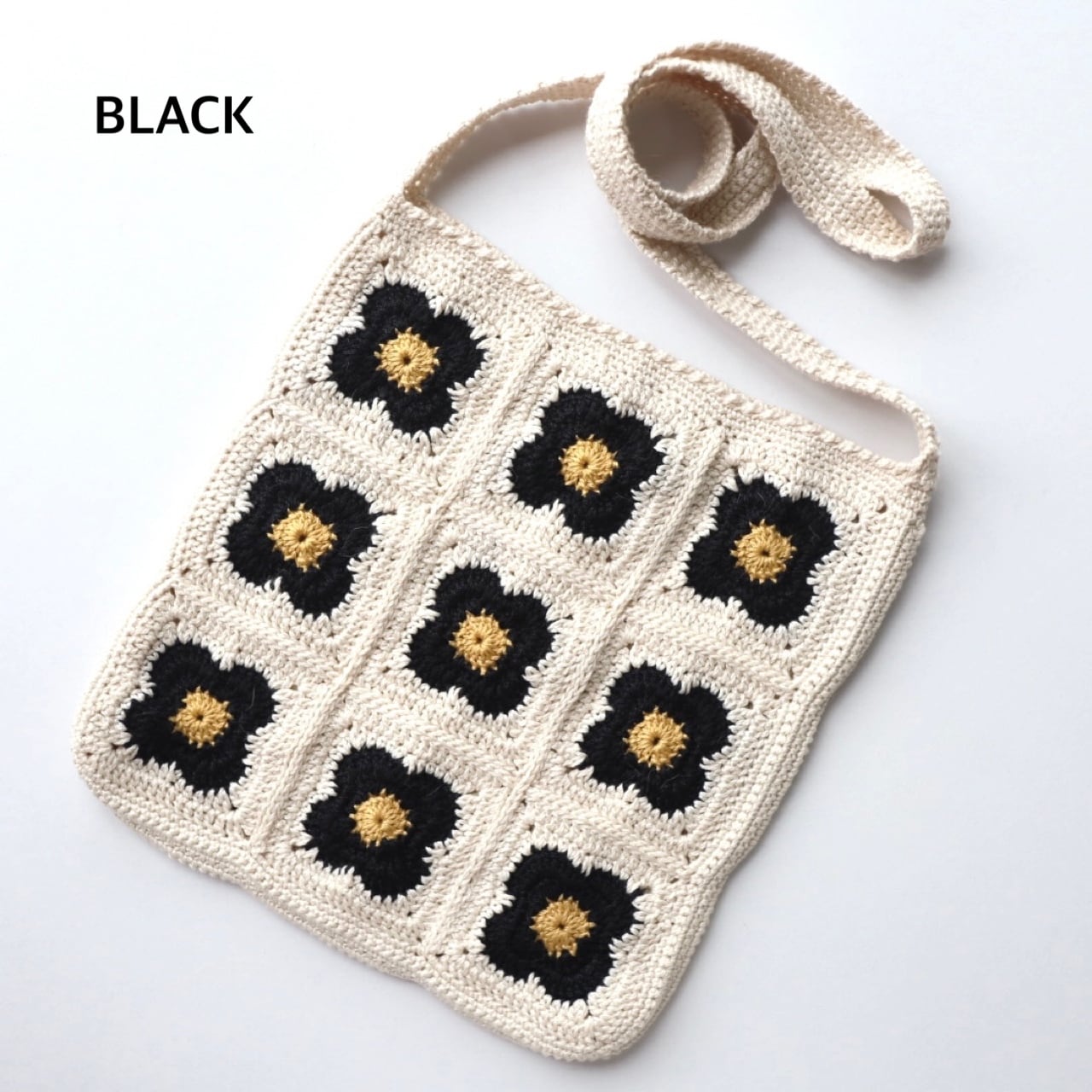 ◉かぎ針のため使っていくと多少伸び感が出ますが、紐を結んで長さ調整をしてお使いください。
